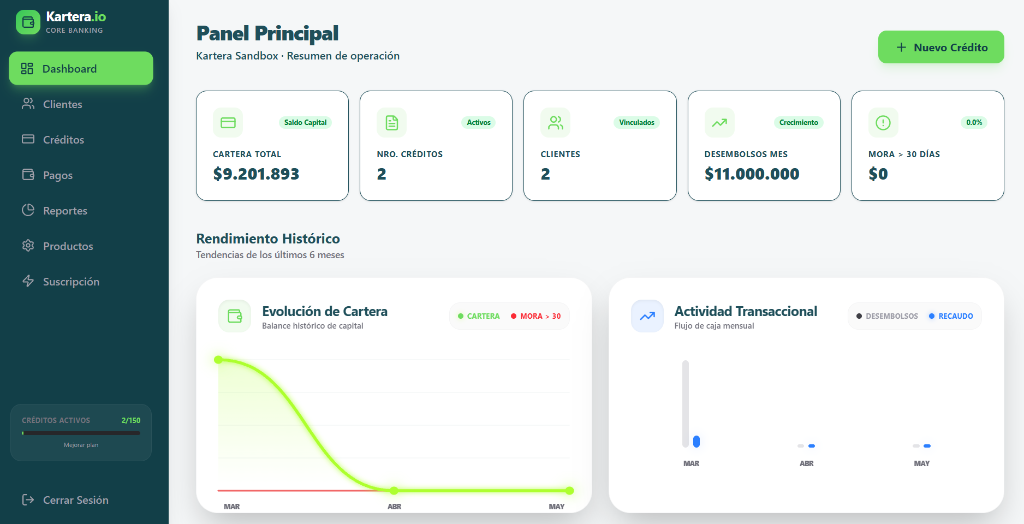 Dashboard con indicadores de cartera en tiempo real